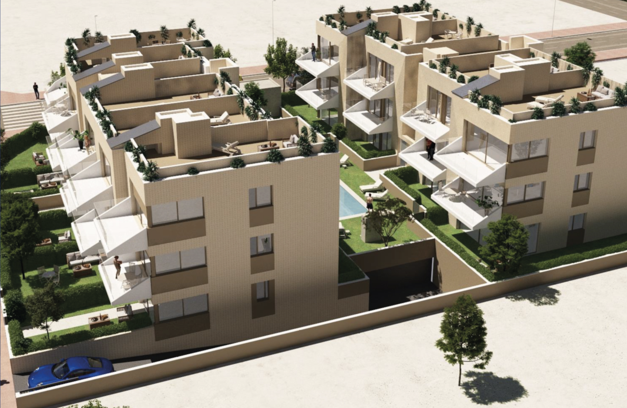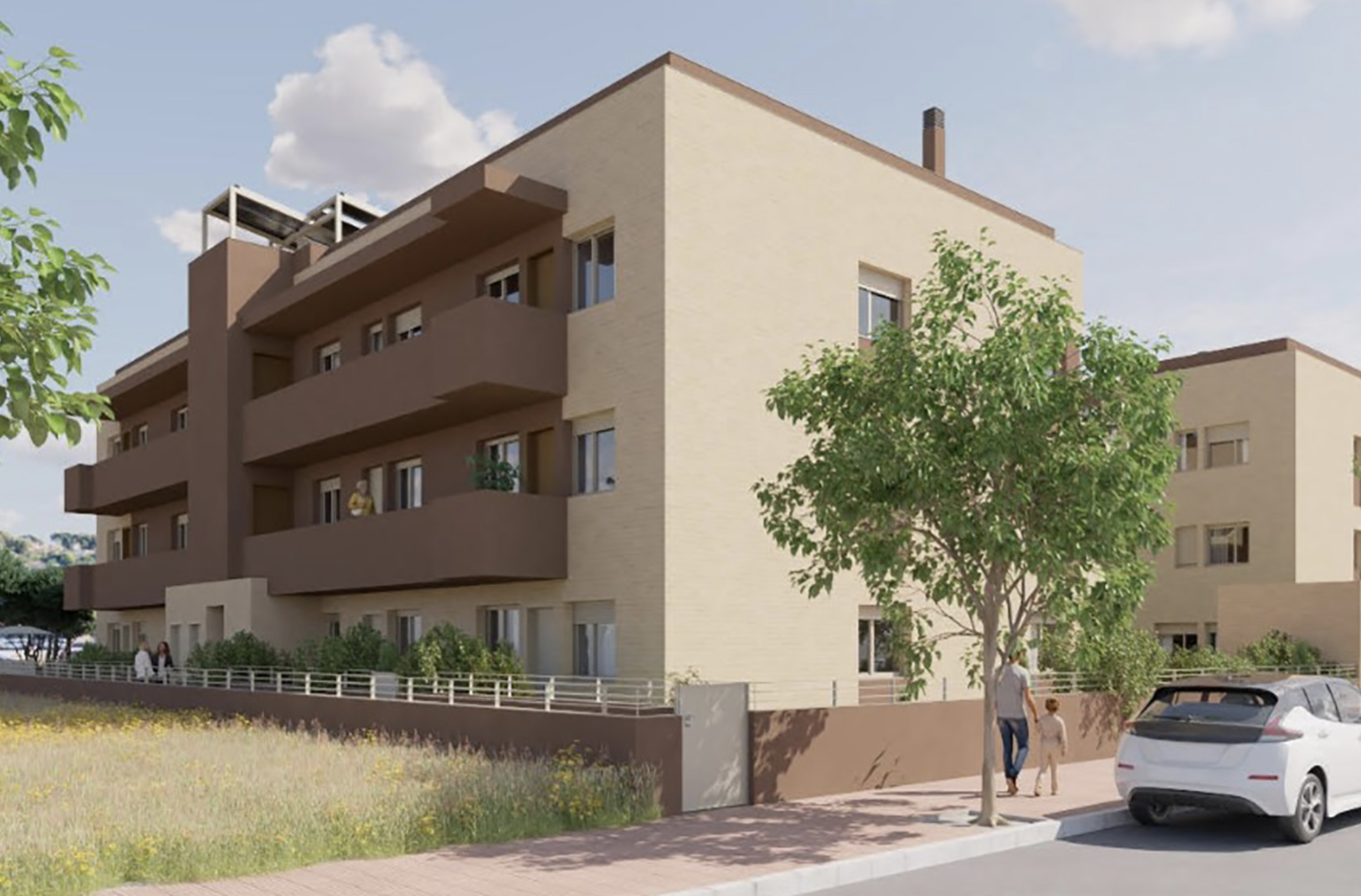 Obra nueva de 27 viviendas distribuidas en dos bloques, con zona comunitaria.